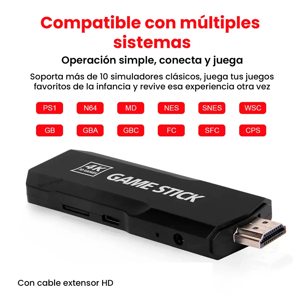 La GameStick 4K se presenta como la elección perfecta para aquellos que desean gozar de juegos en la compañía de sus seres queridos. Brinda numerosas horas de entretenimiento para jugadores de todas las edades. Además, cuenta con una interfaz sencilla y un diseño contemporáneo y compacto.